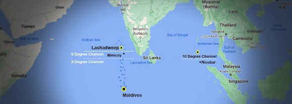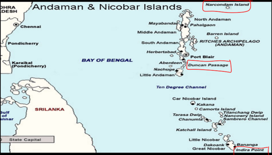 Ten Degree Channel separates Andaman islands from Nicobar islands ➡️ BAY OF BENGAL Amini Island Cannanore Island. ➡️ ARABIAN SEA water body Barren islands only active volcano in India
